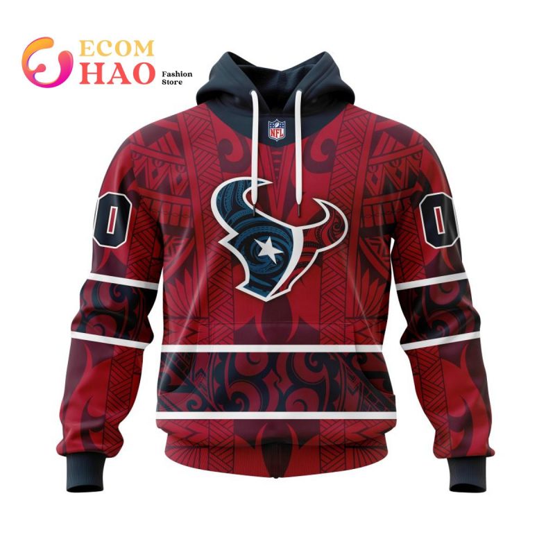 The Houston Texans specialized native jersey with samoa culture 3D hoodie has meaningful design. It is in the shape of a flag to show their football spirit. Local features of Polynesian people are added such as headdresses, stamps and tassels.Houston Texicans specializes in undergraduate and graduate college apparel, Spiritwear, Corporate Apparel and Custom Apparel. The team’s helmet is a symbol which can represent their fighting spirit on the football field. The helmets have different color stripes on the top for distinction purposes. Navigation bars are newly set up for easier browsing experience by NFL teams.