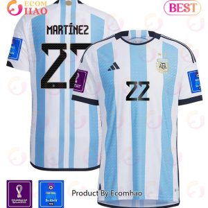 Argentina National Team FIFA World Cup Qatar 2022 Patch Lautaro Martinez 22 Home Men Jersey
