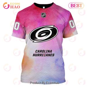 Carolina Hurricanes Custom Your Name & Number Breast Cancer Awareness Month 3D Hoodie Unisex T-Shirts, Ladies, Youth, Long Sleeve, Sweatshirt, Mug, Mask