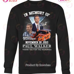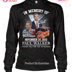 In Memory Of November 30, 2013 Paul Walker Thank You For The Memories T-Shirt Information: