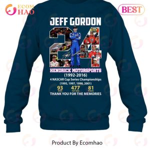 Are you a fan of Jeff Gordon? This shirt is perfect for you! It’s made with high quality materials and it will show your support for the 1992 – 2016 season. You’ll look great in this shirt and you’ll feel grateful for all of Gordon’s achievements. Order now and show your appreciation for a truly amazing motorsport career! Hi, my name is Jeff Gordon and I have been a part of Hendrick Motorsports for over twenty years! This shirt is a way to say “thank you” for all the memories. It’s a popular new fashion item and it makes a great gift for any race fan! Looking for a stylish way to show your appreciation for Jeff Gordon’s career? Look no further than this Jeffrey Gordon Hendrick Motorsports 1992 – 2016 Thank You For The Memories T-Shirt! This top is made from 100% cotton and features a stylish printed design that will let everyone know how much you appreciate Jeff’s accomplishments. Jeff Gordon, a four-time NASCAR champion and one of the most decorated drivers in history, brought his unparalleled skills and passion to Hendrick Motorsports. Born in 1977 in Kannapolis, NC, Gordon became a professional racing driver at the ripe age of 18. In 1992, he made his NASCAR debut with Hendrick Motorsports as a member of their Busch Series team. In just two seasons, Gordon went on to win five races and capture Rookie of the Year honors. He then signed with Hendrick Motorsports full time and competed in the premier Cup Series championship. Between 1995 and 2004, Gordon won 43 races, captured three Drivers’ Championships, and became known as one of the greatest drivers in NASCAR history. After several successful years as a team owner, Jeff Gordon returned to racing in 2011 with Stewart-Haas Racing. He would go on to capture seven more race victories en route to another Driver’s Championship. In 2016, Jeff Gordon retired from driving after winning his final race at Sonoma Raceway. Nevertheless, his legacy will live on through his countless accomplishments on the track and his amazing relationship with Hendrick Motorsports. Thanks for making Jeff Gordons motorsports story part of your own!