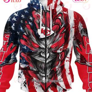 Kansas City Chiefs Demon Face American Flag 3D Unisex Hoodie Zipper Hoodie, Fleece Hoodie, Sweater, T-Shirt