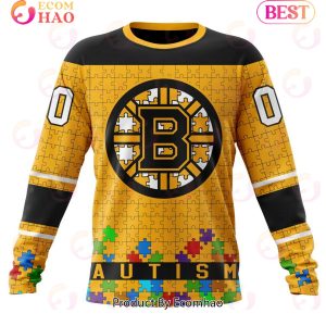 NHL Boston Bruins Specialized Unisex Kits Hockey Fights Against Autism 3D Hoodie Information: