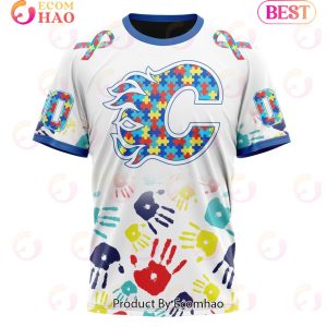 NHL Calgary Flames Special Autism Awareness Design 3D Hoodie, Zipper Hoodie, Fleece Hoodie, Sweater, T-Shirt
