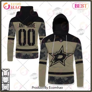 Gear up like a true Dallas Stars fan and pay tribute to the military with our NHL Camo Military Appreciation Team Authentic Custom Practice Jersey 3D Hoodie. This hoodie features the team’s authentic practice jersey design infused with a camo military appreciation theme, creating a unique and stylish look. Personalize it with your name or the name of your favorite player for a customized touch. Crafted with top-notch materials, this 3D hoodie offers exceptional comfort and durability. Whether you’re cheering from the stands or showcasing your team pride, this hoodie is a must-have for passionate Stars fans.