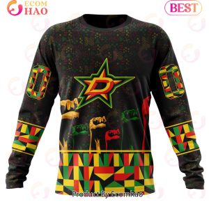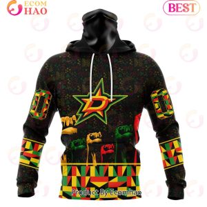 .This hoodie is a perfect way to celebrate Black History Month in style. Show your support for the NHL team, the Dallas Stars, while acknowledging the accomplishments of African-Americans. The unique 3D design and high-quality fabrics make this hoodie a comfortable, stylish way to stay warm and show your appreciation for such an important occasion. Not only will you stay warm in this hoodie, but you will also be able to show off a stylish and distinctive design that celebrates the accomplishments of African-Americans. With its bold colors, unique pattern, and comfortable fit, it is a must-have for any Dallas Stars or hockey fan. Get your hands on this one-of-a-kind hoodie and join in the celebration!