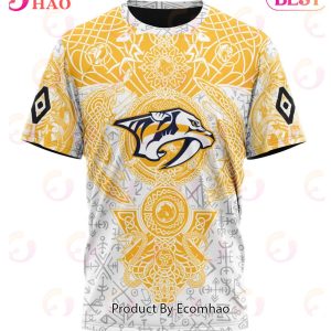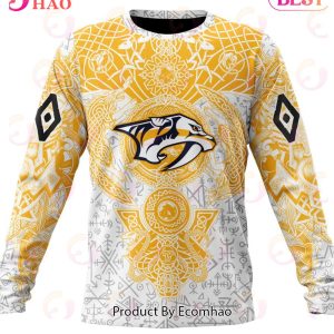 The Nashville Predators are one of the most storied franchises in all of sports. With a rich history dating back to 1996, they have made a name for themselves as one of the most exciting and competitive teams in the NHL. As such, they have fans all over the country who rally behind them no matter what. And when it comes to apparel, there’s nothing more patriotic than a team’s logo boldly displayed on clothing. This is why we’ve created this Nashville Predators Special Norse Viking Symbols Hoodie, T-Shirt, and Sweater!