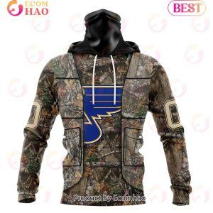 NHL St. Louis Blues Specialized Unisex Vest Kits With Realtree Camo 3D Hoodie Information:
