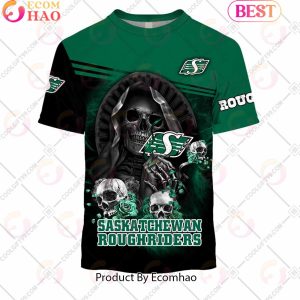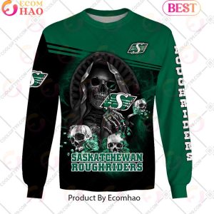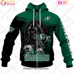 Personalized CFL Saskatchewan Roughriders Skull Death Art 3D Hoodie, Zipper Hoodie, Fleece Hoodie, Long Sleeve Shirt, T-Shirt