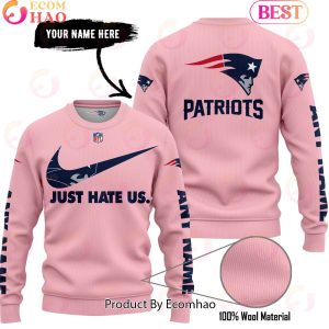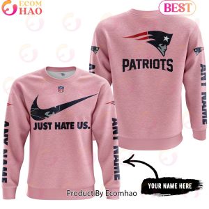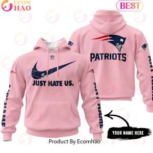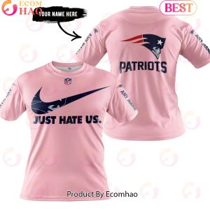 Just Hate Us Pink Custom Name New England Patriots Hoodie, Zipper Hoodie, Fleece Hoodie, Long Sleeve Shirt, T-Shirt