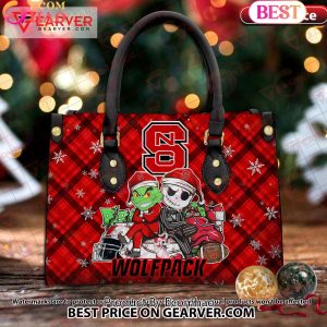 NCAA NC State Wolfpack Grinch And Jack Skellington Christmas Women Leather Hand Bag