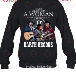 Never Underestimate A Woman Who Listen To Rock And Pop And Loves Garth Brooks T-Shirt Information: