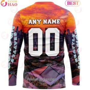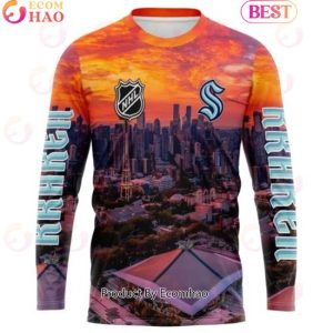 Using this unique 3D hoodie with a personalized arena skyline design definitely adds an extra touch of excitement and energy to my overall game day experience. The intricate details of the skyline design, along with the bold and vibrant colors, make this hoodie stand out among other team merchandise. Putting it on, I can’t help but feel a sense of pride and connection to the team and city. The material is comfortable and durable, perfect for braving any unpredictable weather during game day. And not to mention, the added personalization feature makes it feel truly one-of-a-kind. It’s a great way to show my support for NHL Seattle and their journey as a new team in the league. Seeing the skyline reminds me of the city’s rich history and culture, making me feel like a part of something greater than just a fan of a sports team. Overall, wearing this hoodie enhances my game day experience and makes me feel like a true member of the team, representing my city and its beloved hockey team.